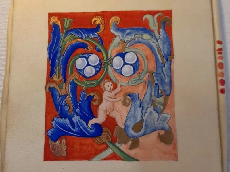 Pour ce faire, il utilise des copies d'outils, d'accessoires, de fac-similés de manuscrits qui sont liés à sa fonction.